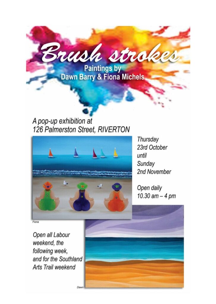 Fellow artist Dawn Barry and I are excited to bring you Brushstrokes — a pop-up exhibition running from 23 October to Sunday 2 November. Bursting with colour, energy, and personality, our exhibition showcases bright and joyful works from two well-known Southland artists. There’s something for everyone, and we’re sure our pieces will bring a smile to your face. We’d love for you to stop in and say hello as you make your way around the Arts Trail!