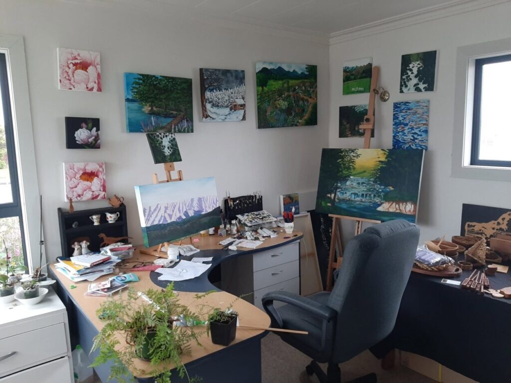 Affectionately named The Garden Gallery, this cosy studio is more than just a workspace – it’s a sanctuary where ideas bloom, colours dance, and imagination takes root. Whether I’m working on a new piece or simply sitting with a cup of tea, the shed offers a peaceful and uplifting environment that nurtures both creativity and well-being.